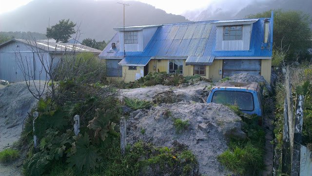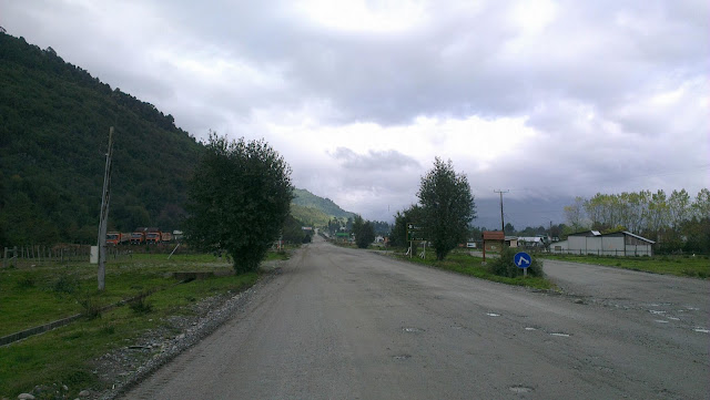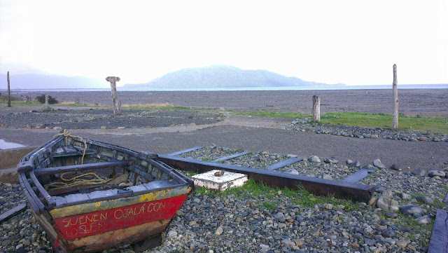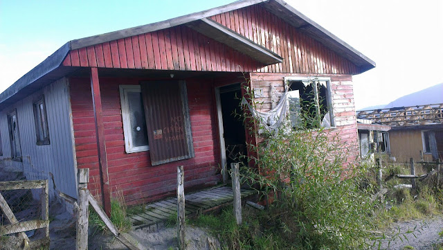 Al final llegamos a el Chaitén, pequeña localidad costera a tan solo 360 km de nuestro destino final, que en 2010 sufrió las consecuencias de que un volcán a cinco kilómetros entrase en erupción, la nube de cenizas llegó hasta Buenos Aires a mas 1000 km de allí, asi que imaginaros como quedó el pueblo... Con decir que el mar se retiró 200 metros y ver las fotos, os haréis una pequeña idea de la desolación que atesora ahora ese pueblo, y si encima llegáis en un día gris y lluvioso, puf la sensación de tristeza se puede tocar...